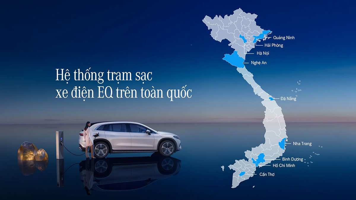 Các trạm sạc hiện đã có mặt tại toàn bộ showroom của Nhà Phân Phối chính hãng trên toàn quốc; Mercedes-Benz Việt Nam sẽ tiếp tục mở rộng phạm vi trạm sạc và thường xuyên cập nhật trên website chính thức của chúng tôi.