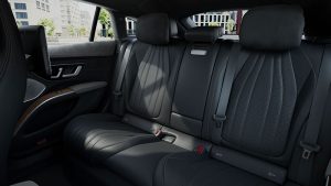 Hệ thống hỗ trợ đánh lái cầu sau: Với hệ thống lái cầu sau với góc lái lên đến 4,5 ° tiêu chuẩn, EQS xử lý mượt mà và ổn định thân xe tối ưu ở tốc độ cao và tăng độ linh hoạt đáng kể. Ở tốc độ dưới 60km/h, chiều dài cơ sở giữa hai trục được rút ngắn để EQS di chuyển nhanh hơn – việc ra vào vị trí đỗ xe dễ dàng hơn do số vòng lăn bánh giảm đáng kể, đặc biệt với tuỳ chọn trang bị gói đánh lái cầu sau với góc đánh lái lên đến 10°.