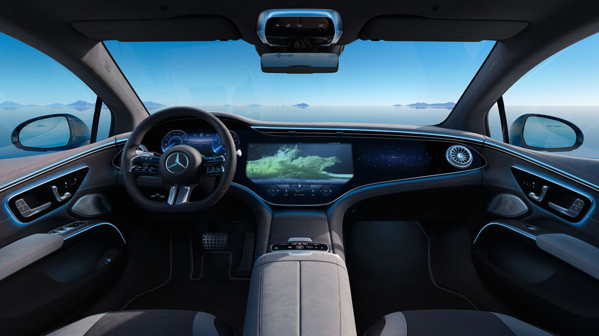 Tái thiết vẻ đẹp nội thất đầy trang nhã: nội thất của Mercedes-Benz EQS 580 4MATIC truyền cảm hứng đầy mê hoặc. Thiết kế mãn nhãn giao thoa khéo léo giữa tính thẩm mỹ và ứng dụng trực quan.