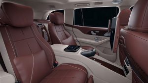 Tương tự mẫu xe Mercedes-Maybach S-Class, hàng ghế sau được thiết kế đặc quyền dành cho ông chủ quyền lực với hai ghế ngồi riêng biệt, tạo ra không gian nghỉ ngơi đẳng cấp. Quan trọng hơn hết, những công nghệ tối tân nhất trên xe đều nằm ở hàng ghế thứ 2. Đầu tiên là khoảng duỗi chân cực kỳ thoải mái lên đến 1.103 mm và có thể mở rộng thêm, ghế bọc da Nappa thượng hạng tích hợp chức năng massage, thông gió và sưởi. Ngoài ra chủ nhân có thể điều chỉnh tựa bắp chân, tựa lưng ghế hoặc có thể ngã về phía sau với góc 43,5 độ để thư giãn trên những hành trình dài đầy thoải mái.